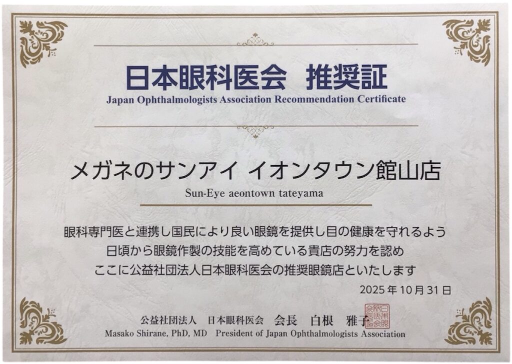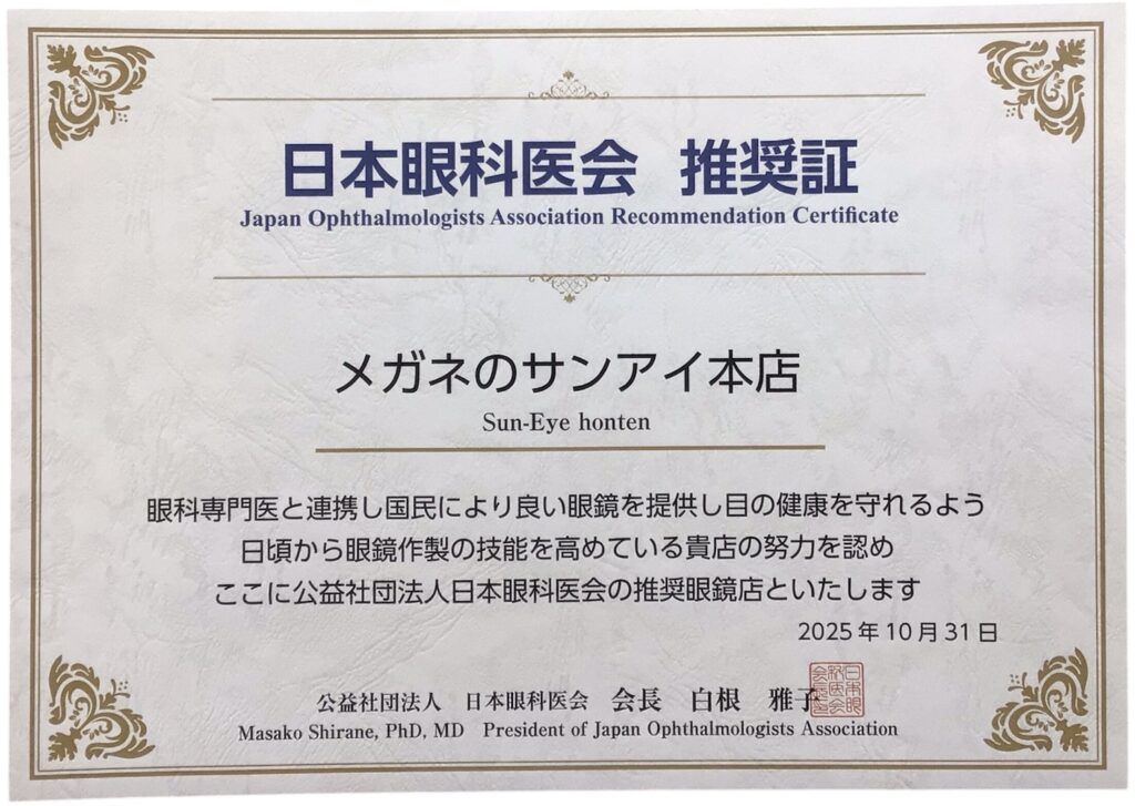 眼科医療の専門的知識と技術を持ち、適切な眼鏡調整を行う眼鏡店として、日本眼科医会が認定する制度です。
